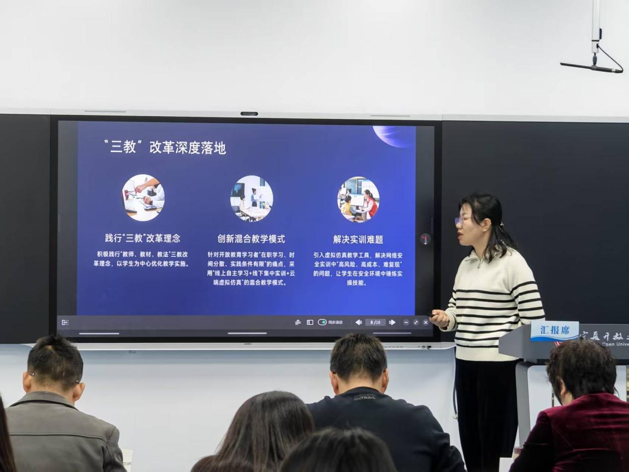 本次评审会特邀我区高校教育技术、学科建设领域的专家组成评审组。各申报团队负责人依次就团队建设目标、成员构成、建设规划、实施路径、预期成果及特色创新等方面进行了详细汇报。汇报内容紧扣开放教育特点,聚焦课程资源开发、教学模式创新、学习支持服务优化、实践教学深化等关键环节。