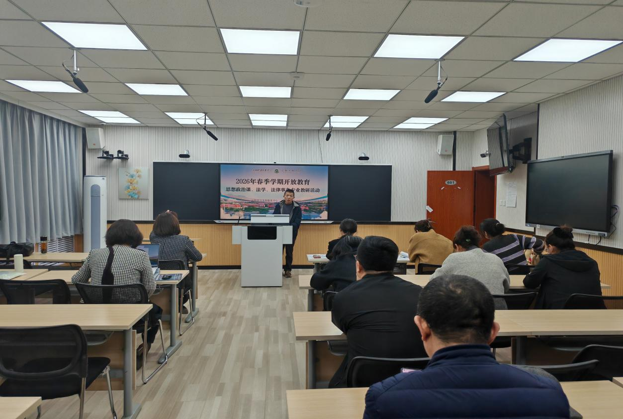 春潮涌动启新程,教研赋能促提升。为扎实做好2026年春季学期开放教育教学工作,进一步规范教学管理、提升教师专业能力、优化人才培养路径,2026年3月12日下午六点,思想政治课、法学、法律事务专业共同在金凤校区六楼智慧教室顺利举办“提质增效、赋能教学”教研活动。