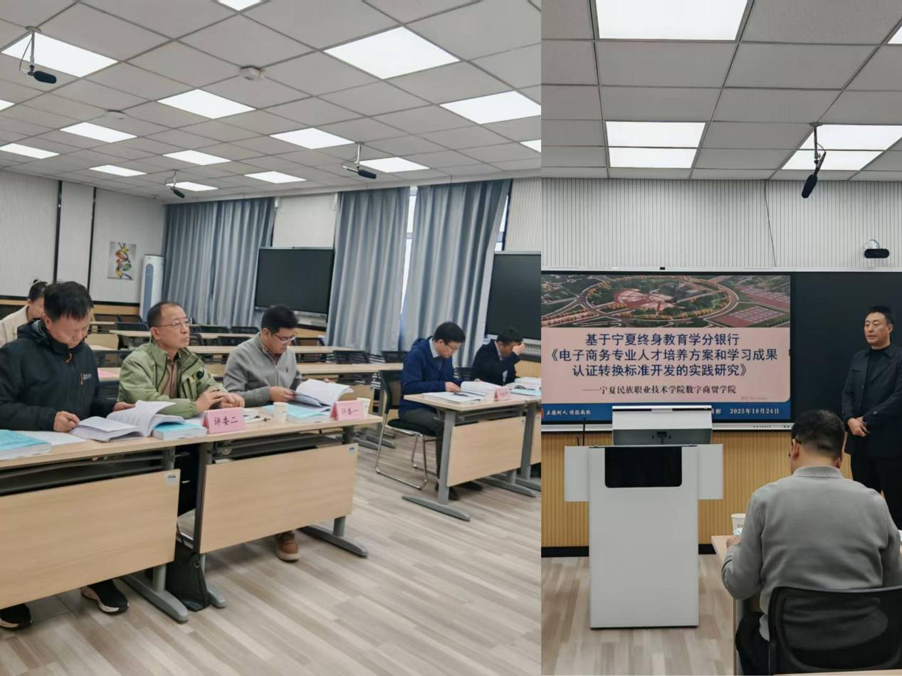 2025年10月24日上午,2023年宁夏终身教育学分银行试点项目结项验收评审会在金凤校区B207会议室顺利召开。自治区教育厅职业与成人教育处副处长高文雄、宁夏职业技术大学(宁夏开放大学)纪委书记马建荣出席会议并发表讲话。参会人员包括项目评审专家、项目负责人及学分银行管理中心全体工作人员。会议由宁夏终身教育学分银行管理中心主任杨晓燕主持。